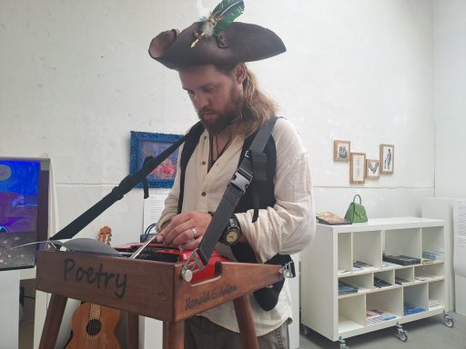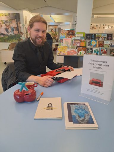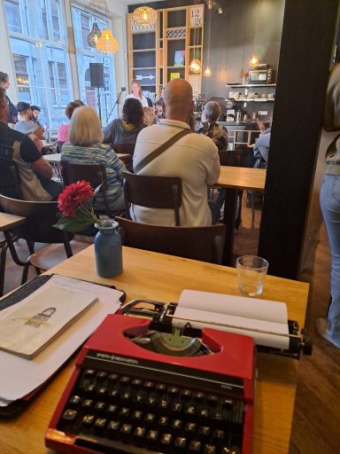 Met mijn Rode typemachine ben ik in te huren voor verschillende gelegenheden. Ik schrijf graag poezie en wil dat ook delen. Om het dichterbij mensen te brengen bedacht ik het concept "Geef mij 10 woorden en ik geef jou een gedicht". Na een tijdje dit te hebben uitgeprobeerd in Woerden in de bibliotheek en Boeken winkel "De Kler". (waar je me nog regelmatig kan vinden.) Heb ik het zelfvertrouwen gevonden om de volgende stap te zetten. Met dat ik dus mobiel ben en op veel plekken terecht kan, ben ik benieuwd naar waar dit avontur mij gaat brengen. Om het dichterschap toegankelijk te maken raad ik het iedereen aan. Om te maken of te lezen. Voor iedere gebeurtenis is wel een gedicht te schrijven. Zelf vind ik het leuk en altijd een verassing welke 10 woorden zijn weg vinden. De enige criteria die ik hanteer is dat de woorden in de "dikke van dale" moeten voorkomen. Bij mij hebben de thema's allemaal wel een keer de revu gepasseerd. Van liefde tot verdriet tot steun tot verjaardag tot gewoon een verzameling onzin. Ik ben per uur in te zetten en probeer altijd een gedicht per 10 minuten te maken. Kijk op deze pagina naar een aantal foto's om een beeld te krijgen wat ik doe. Voor mij is het in essentie cadeautjes maken op papier en af en toe een beetje wijsheid mee te geven. Als het lukt ook wat hoop en kracht. Ik kan natuurlijk ook een gedicht schrijven speciaal voor een gelegenheid, denk aan verjaardag of pensioen of gewoon omdat iemand dat verdient. Een mail sturen met verdere vragen is altijd goed en kan naar Info@reapoetry.nl